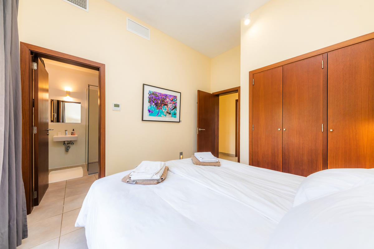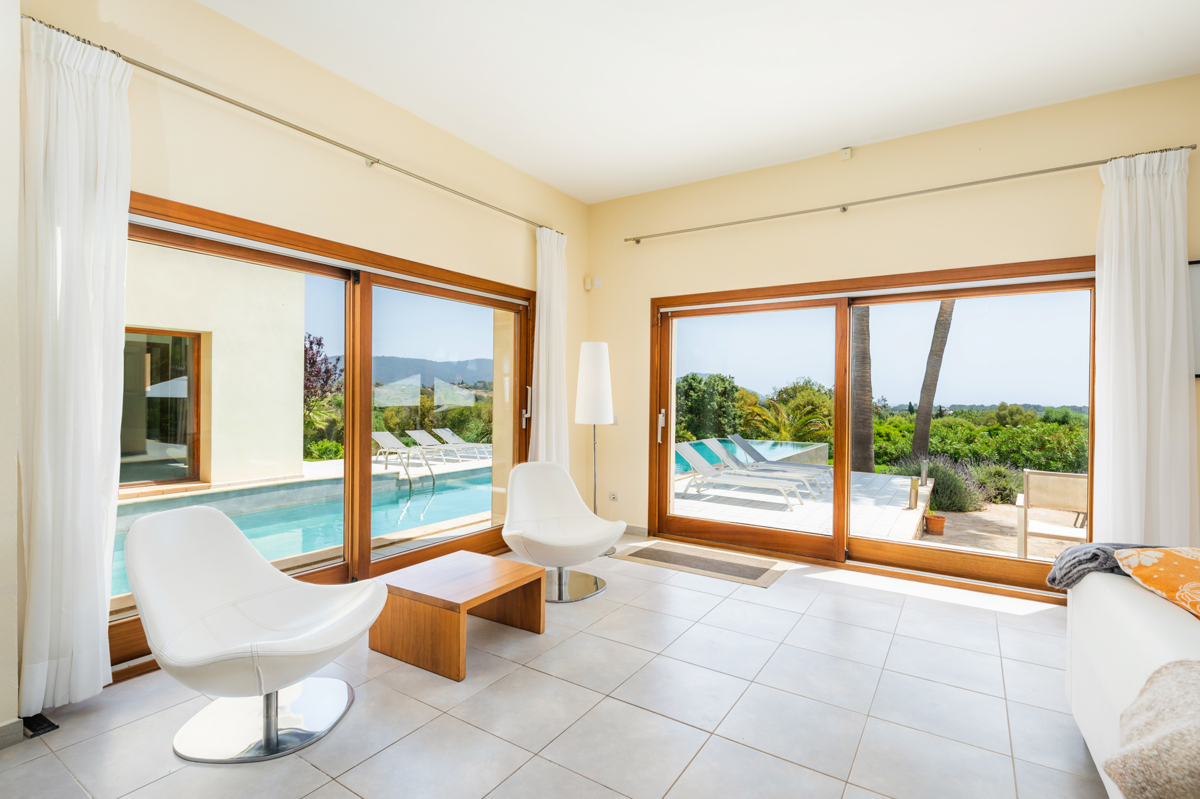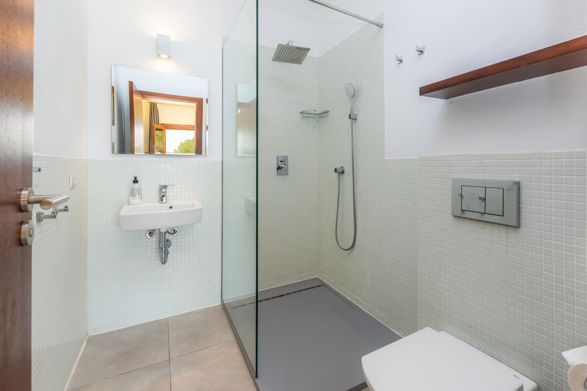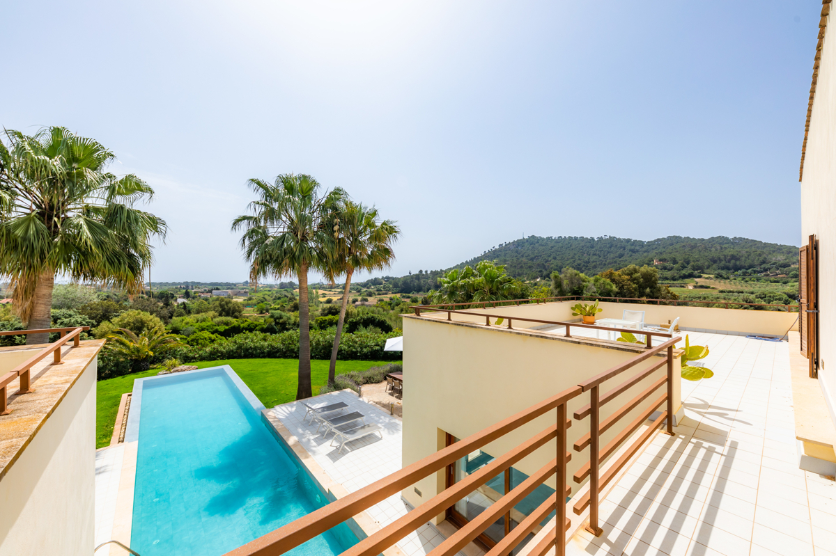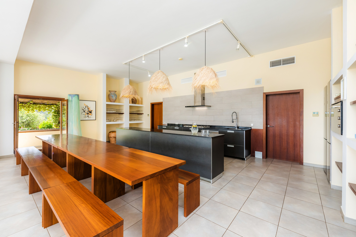 Von der Küche aus haben wir direkten Zugang zur Terrasse mit Chill-Out-Bereich und Grill und vom Wohnzimmer aus haben wir auch direkten Zugang zur Terrasse und zum Pool. Auf derselben Etage befinden sich die 4 Schlafzimmer mit jeweils eigenem Bad en suite mit direktem Zugang zur Terrasse, Einbauschränken und ein fünftes von außen zugängliches Schlafzimmer, ebenfalls mit eigenem Bad.