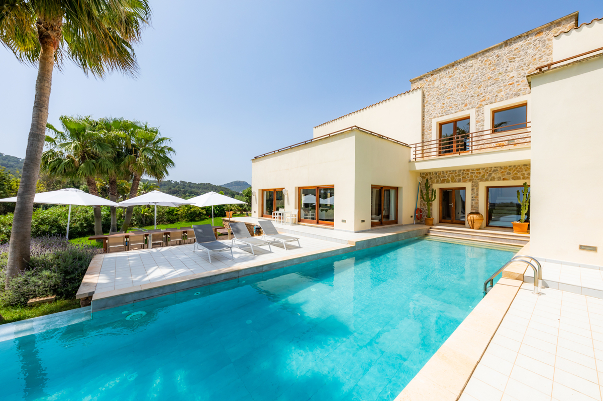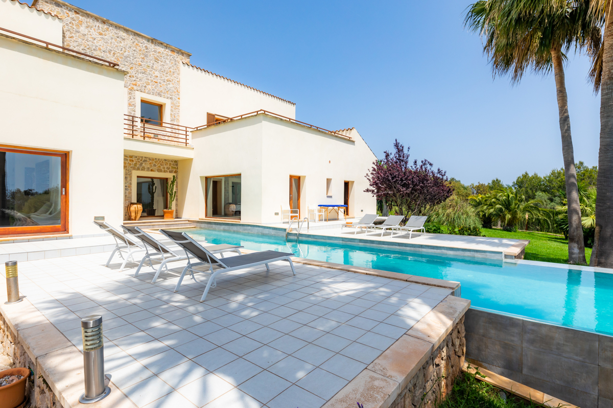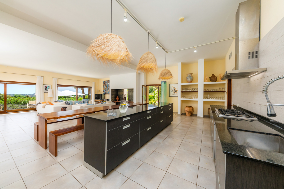 Diese imposante Luxusfinca befindet sich in Son Servera, ganz in der Nähe der bekannten Costa de los Pinos, mehrerer Golfplätze und mehrerer Strände und Buchten mit kristallklarem Wasser.Die Finca ist sehr gut in die Umgebung integriert. Sie betreten das Haus durch typische Holztüren. Im Inneren befindet sich das geräumige Wohnzimmer mit offener, voll ausgestatteter Küche, hinter der Küche befinden sich eine Toilette, eine Speisekammer und die Waschküche.