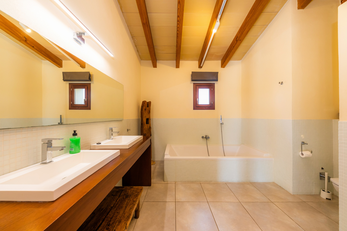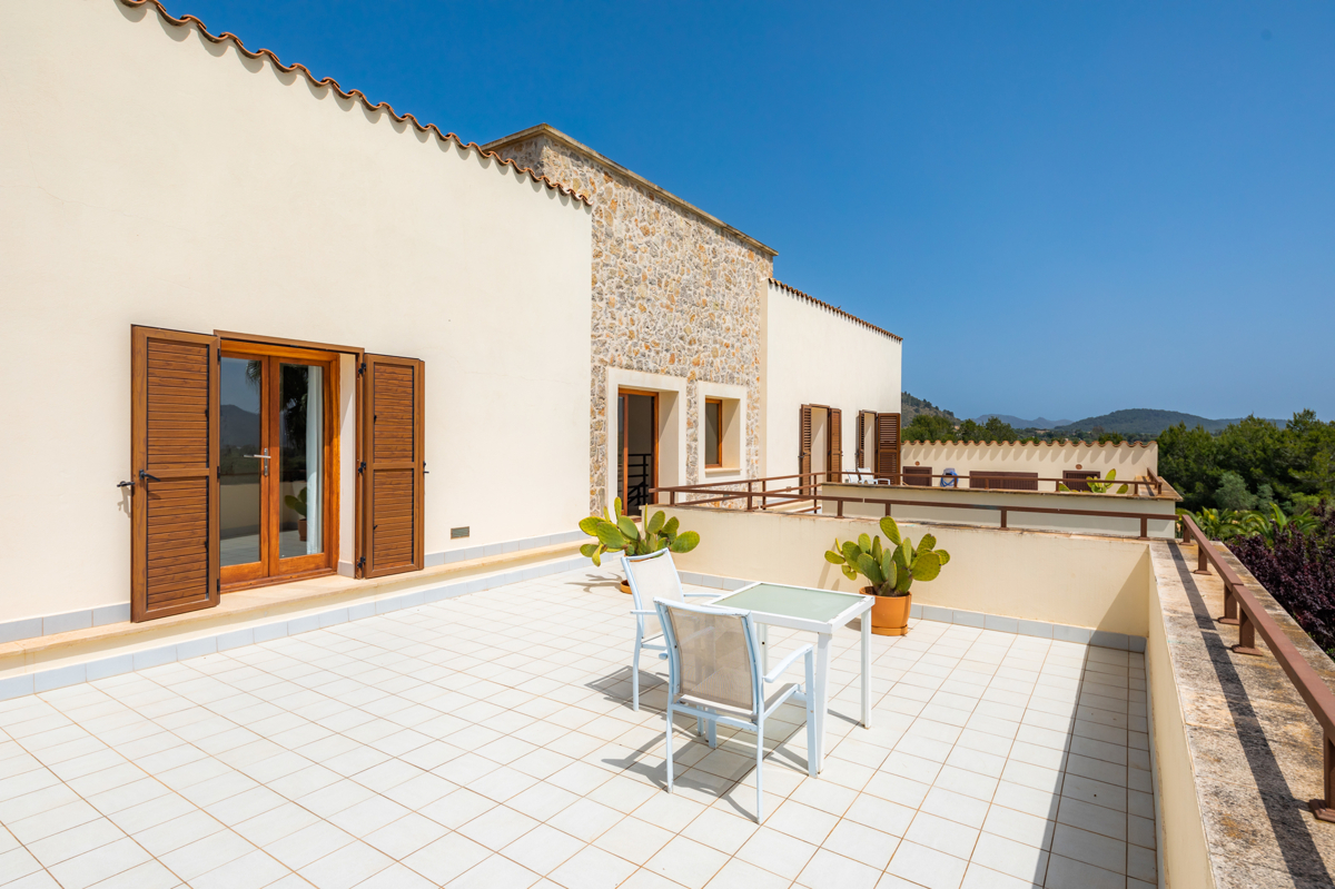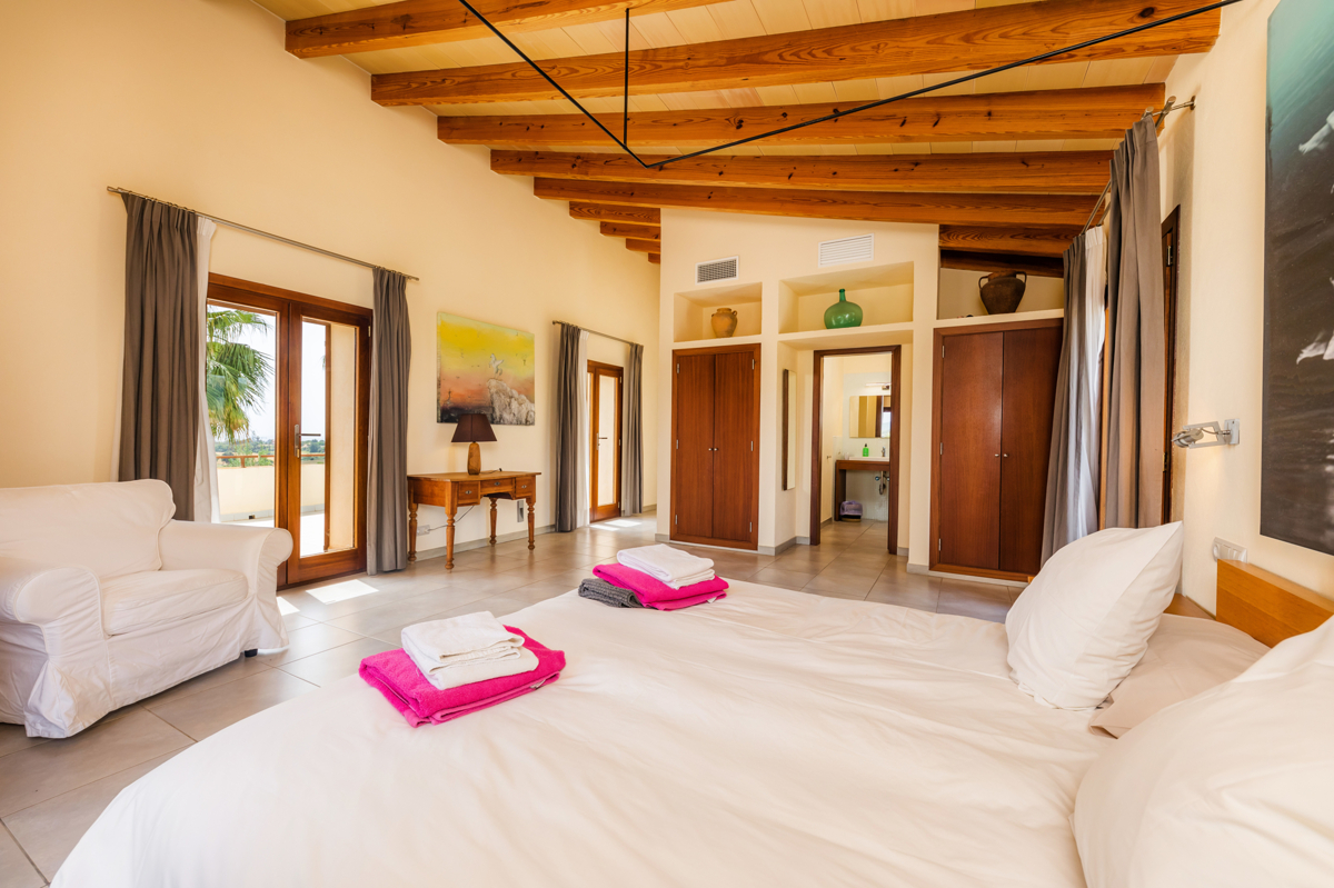 Wenn wir die Treppe hinaufgehen, befinden sich dort wir zwei große Hauptschlafzimmer, beide mit eigenem Bad und direktem Zugang zur großen Terrasse mit herrlichem Blick auf die Berge und das Meer.